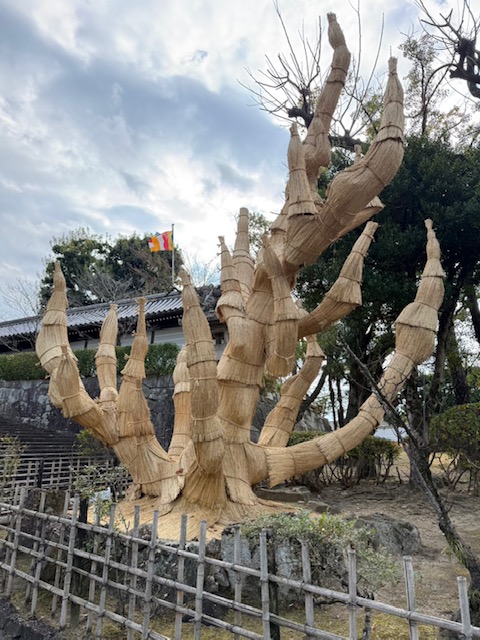 ソテツに巻かれた「こも」が取れるまでは、まだまだ厳しい寒さです。