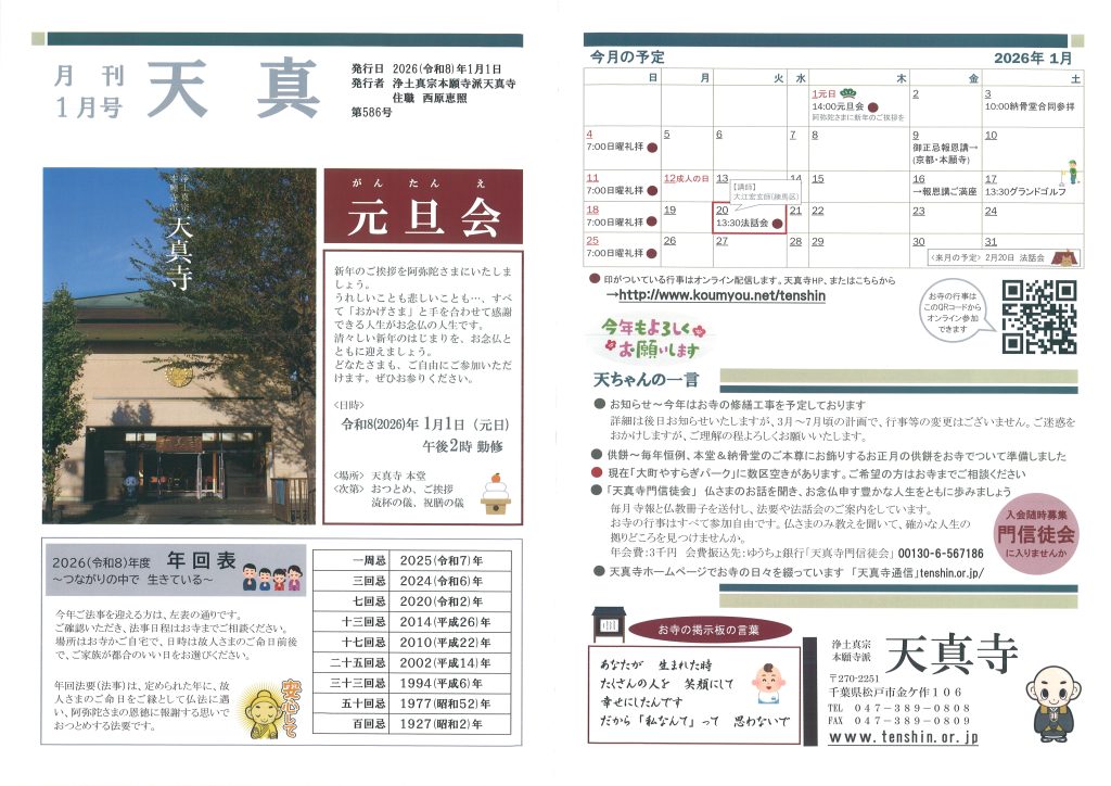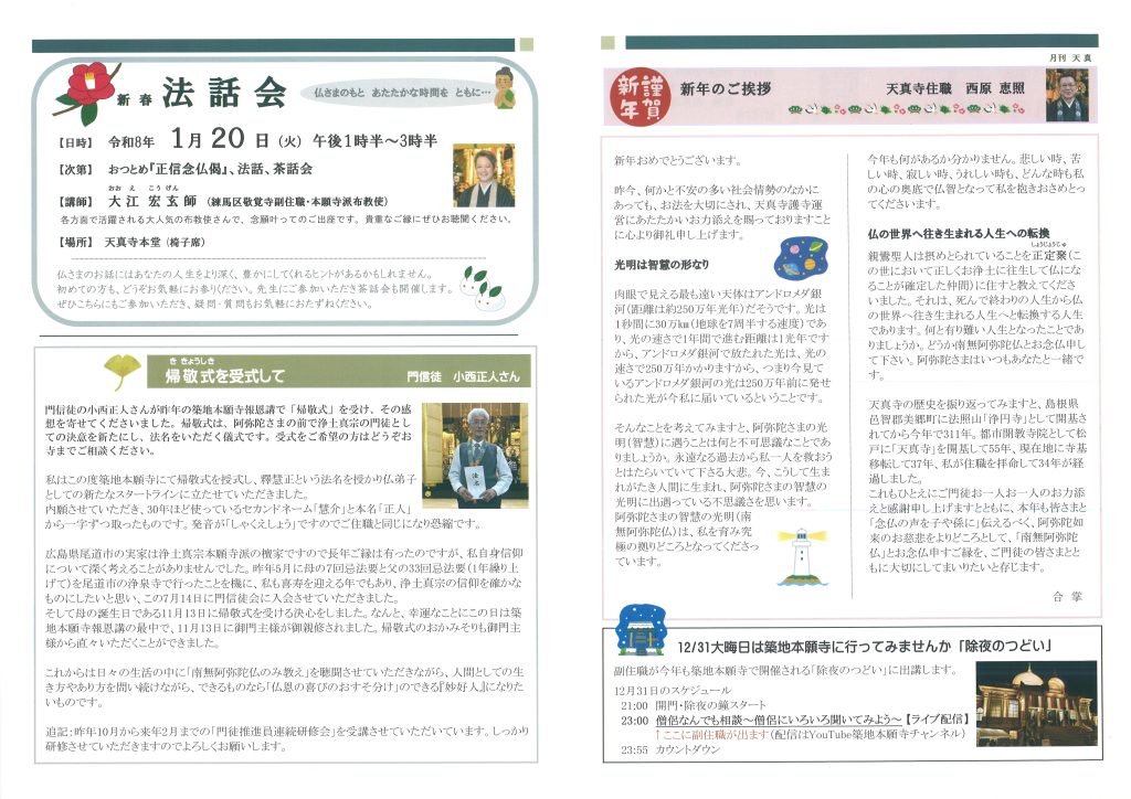 2026年1月号の寺報「月刊天真1月号」です。